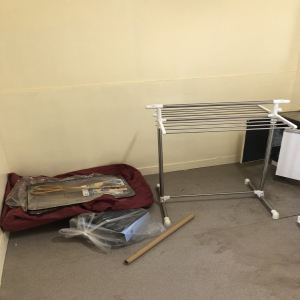 引っ越し時の一部屋の不用品回収であるものの、5階の階段の搬出作業が発生したため、作業スタッフは2名でお伺いしました。階段での搬出作業ではありましたが、細かいものが中心でしたので2-3時間程度で作業は完了になっております。エレベーターが無い場合でも、片付けドクターにお任せください。